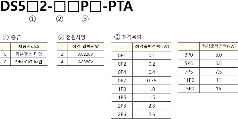 ※ DS5L2 시리즈 0.1~ 3.0kW / DS5C2 시리즈 0.1~ 17.0kW