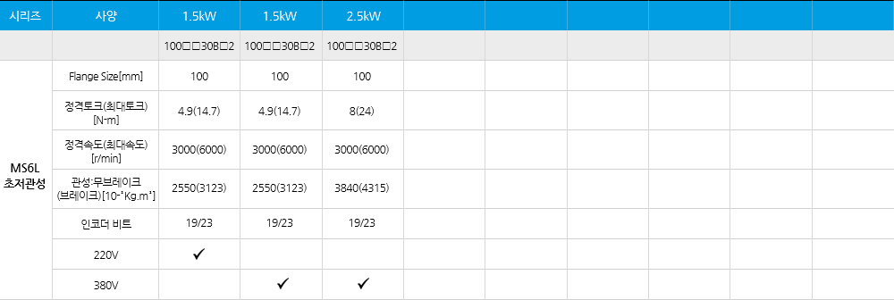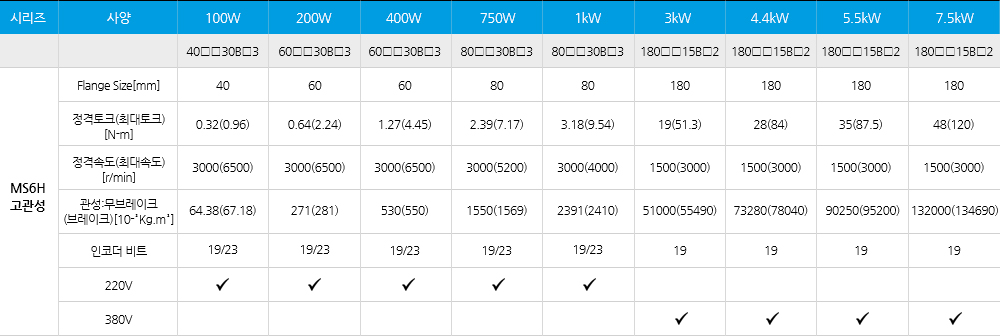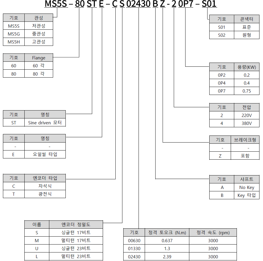 | 정격용량 | 0P1 : 0.1KW 0P2 : 0.2KW 0P4 : 0.4KW 0P7 : 0.75KW 1P0 : 1KW 1P5 : 1.5KW 2P3 : 2.3KW 2P6 : 2.6KW |